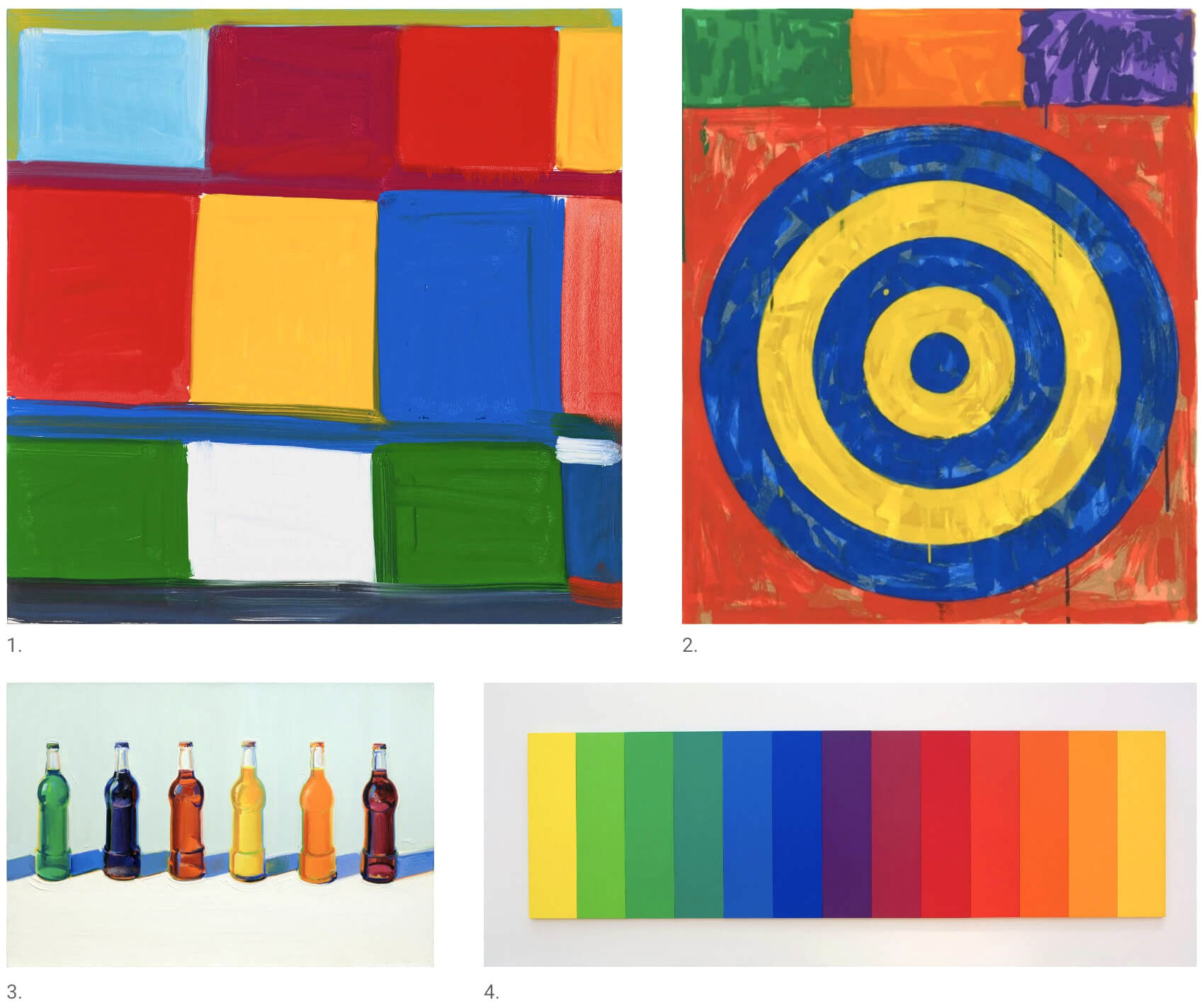 3. Wayne Thiebaud. Pop Bottles,1970 © Sotheby's. 4. Ellsworth Kelly. Spectrum II, 1966–67 © Ellsworth Kelly Foundation, Courtesy Matthew Marks Gallery